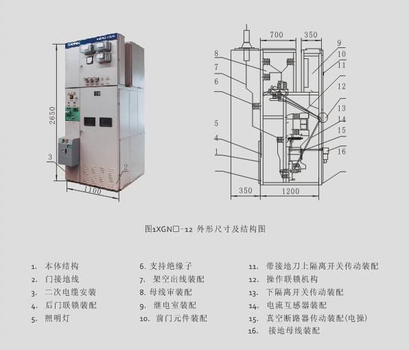 XGN2-12型箱式固定式交流金屬開關(guān)設(shè)備(簡稱“開關(guān)設(shè)備”),適用于額定電壓為6.3~12kV、50Hz,額定電流630A~4000A三相交流單母線、雙母線、單母線帶旁路系統(tǒng),作為接受和分配電能之用。可滿足各種類型發(fā)電廠、變電站(所)及工礦企業(yè)的使用要求。