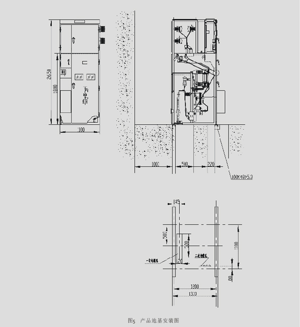 4. 斷路器的操動機構(gòu)裝在正面左邊位置,其上方為隔離開關(guān)的操作及聯(lián)鎖機構(gòu)。開關(guān)柜為雙面維護,前面檢修繼電器室的二次元件,維護操動機構(gòu),機械聯(lián)鎖及傳動部分,檢修斷路器。后面維修主母線和電纜終端,在斷路器室裝有照明燈。前門的下方設(shè)有與柜寬方向平行的接地銅母線,其截面為4×40mm2。